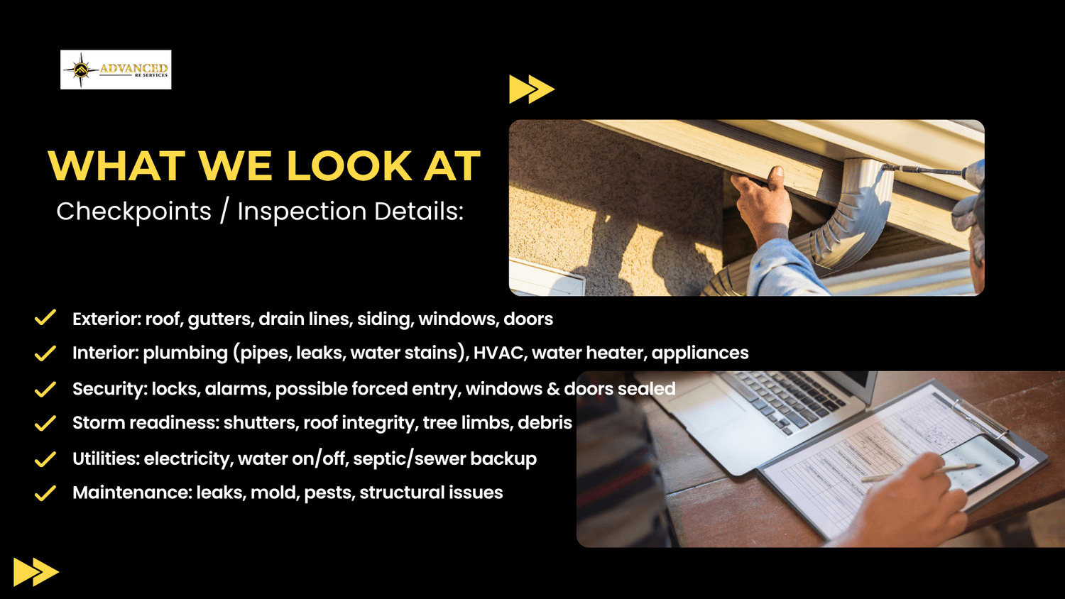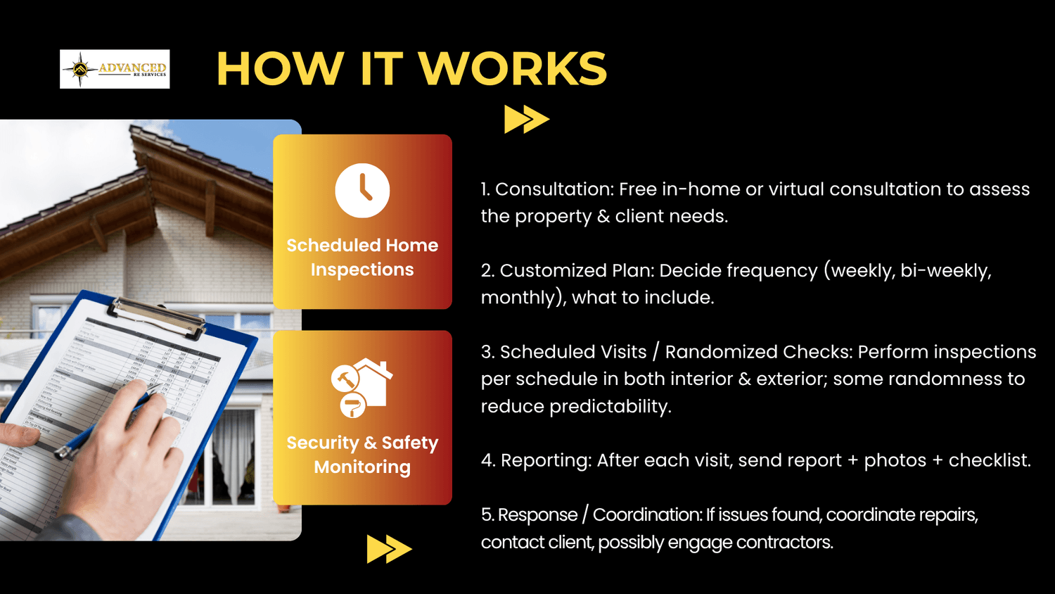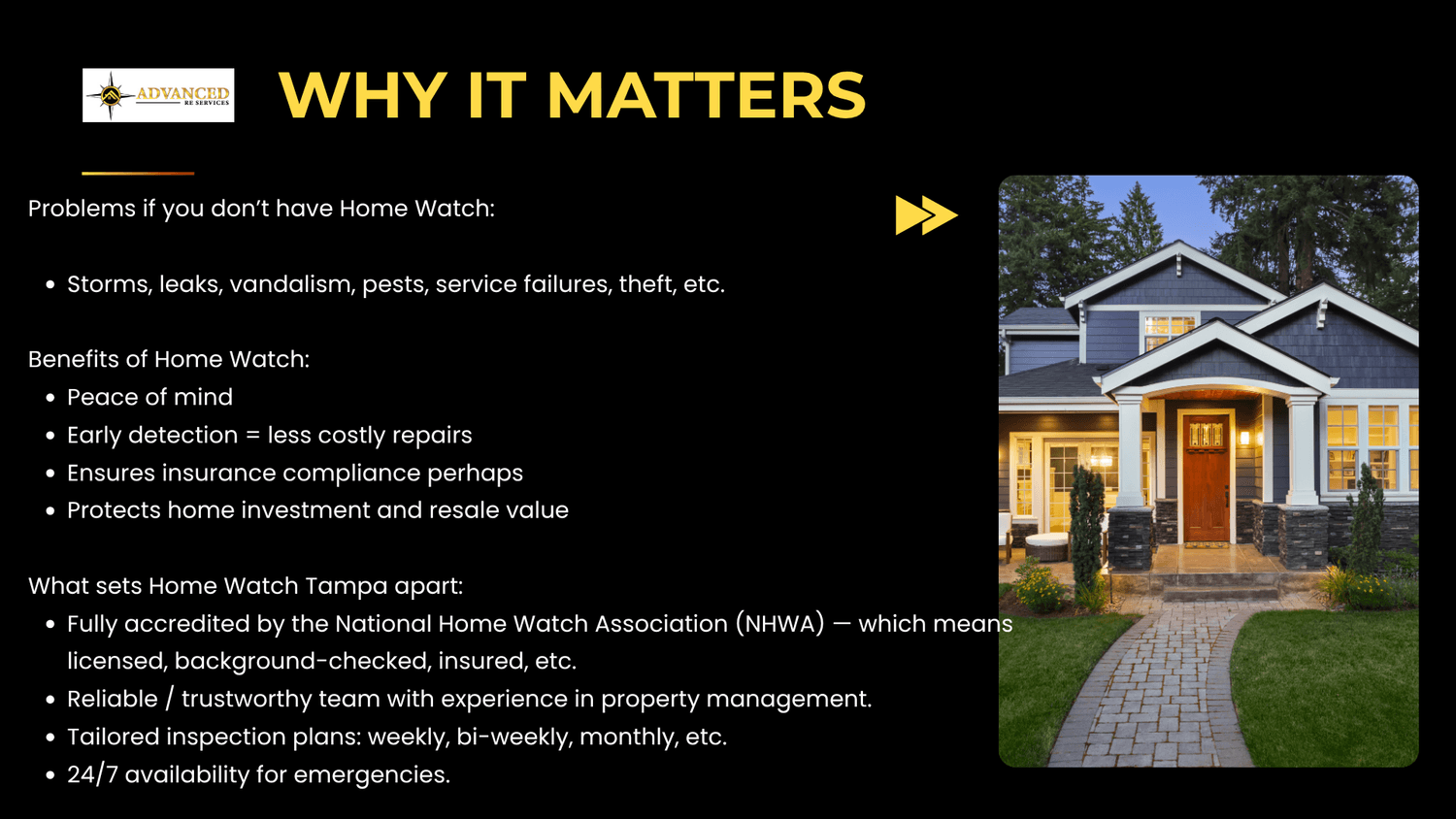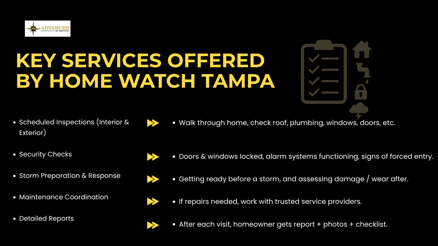 Home Watch Tampa provides scheduled visual inspections to help your property remain secure and well-maintained. From storm damage and plumbing leaks to security concerns, we offer peace of mind while you're away.